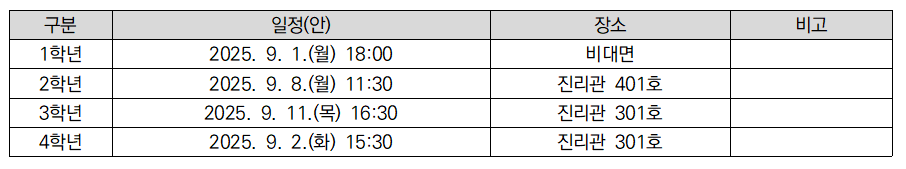 [학부] 2025-2학기 1-4학년 오리엔테이션 일정안내