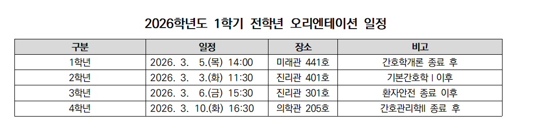 2026-1학기 전학년 오리엔테이션 일정 안내