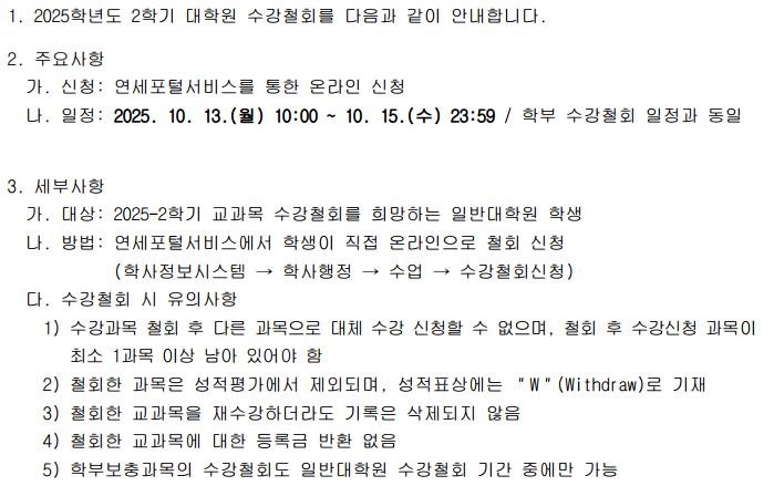 2025-2학기 수강철회 안내