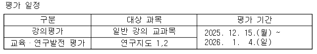 ※ 강의평가 미완료 시 성적 확인 및 정정 기간에 성적 조회가 불가능합니다.