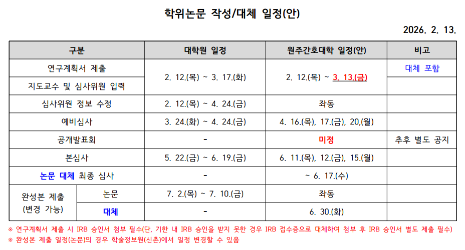 (20260213 기준) 2026학년도 1학기 대학원 학위논문 작성/대체 일정(안)