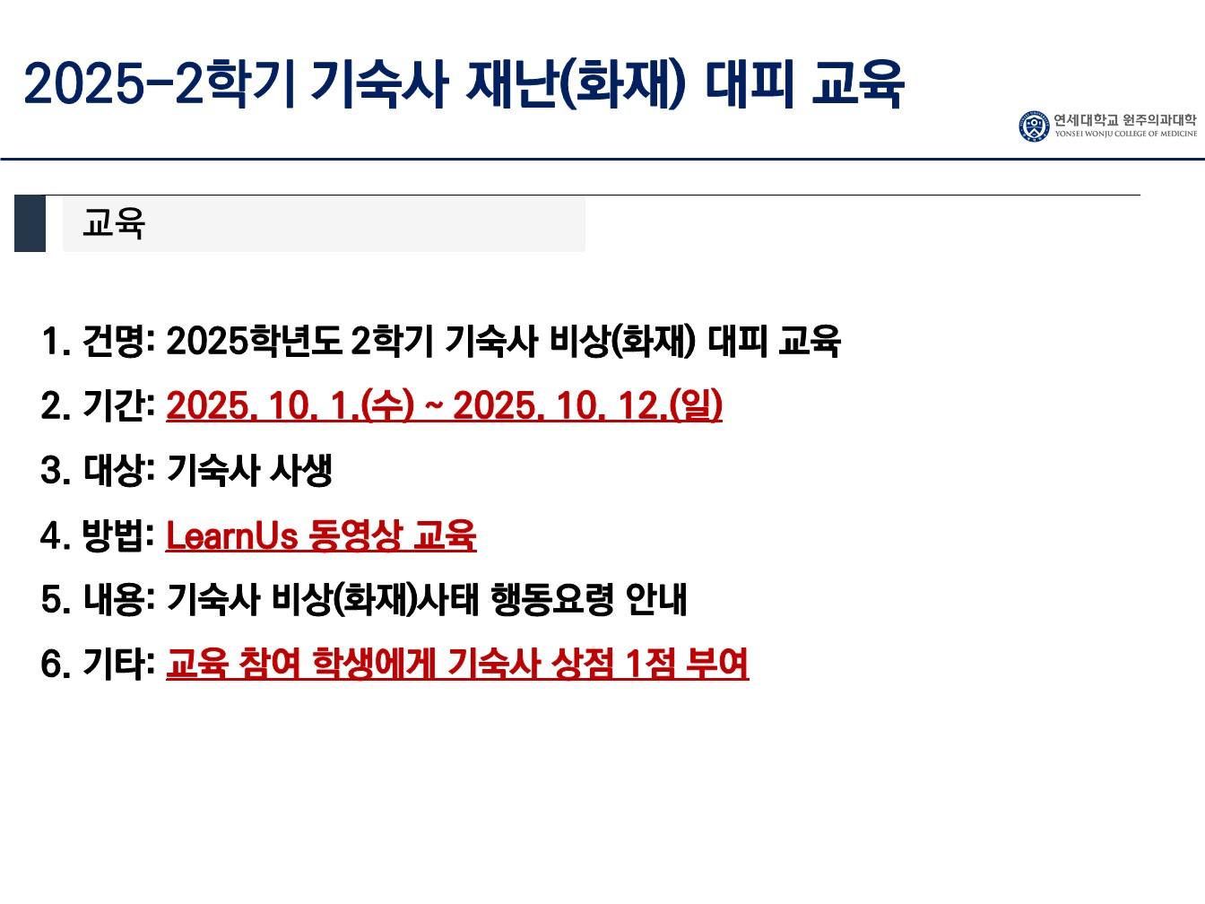 [기숙사] 2025-2학기 기숙사 재난(화재) 대피 교육