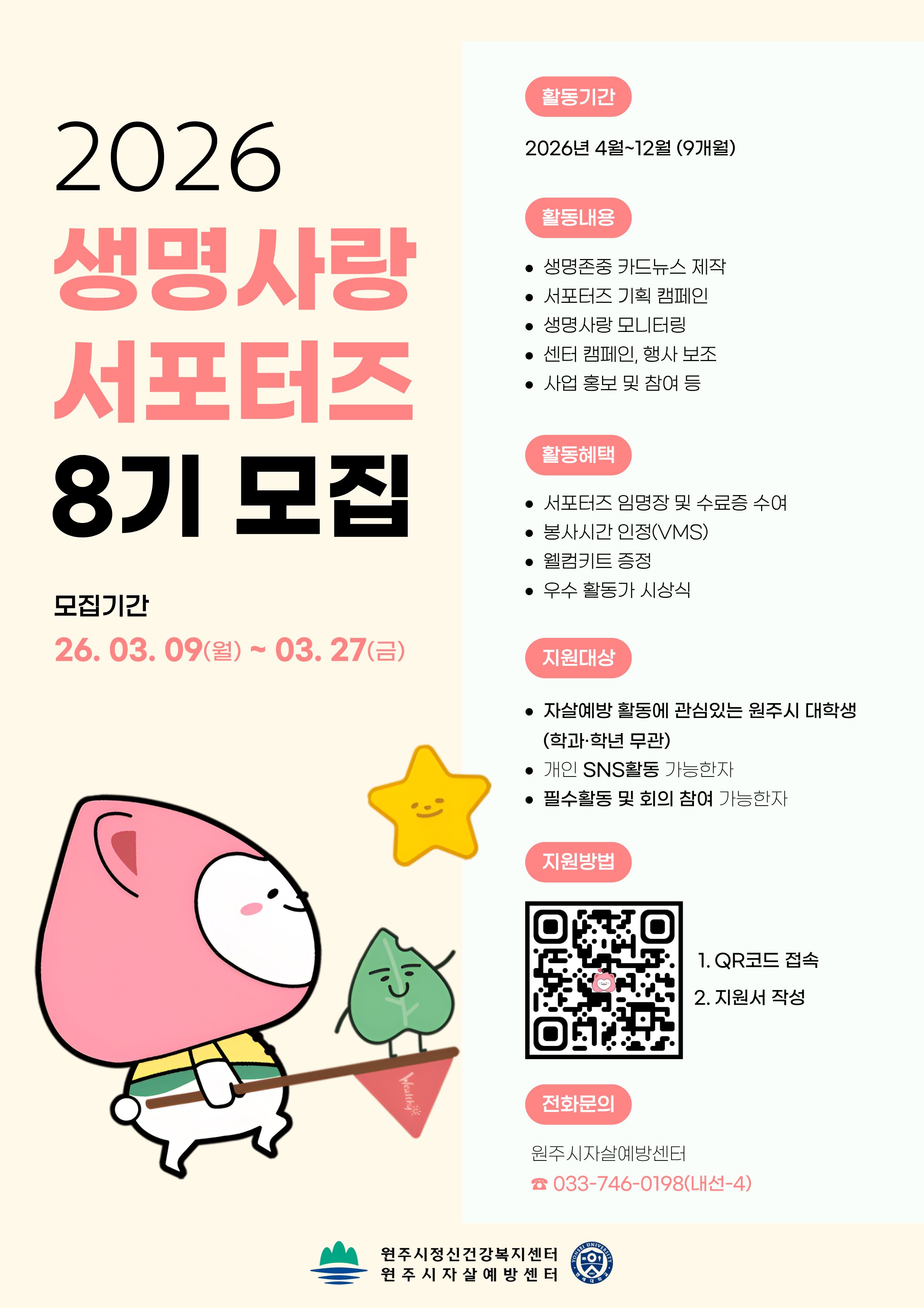 2026 생명사랑 서포터즈 8기 모집(~03/27)