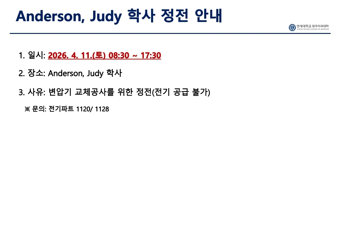 [기숙사] Anderson, Judy 학사 정전 안내(4/11)